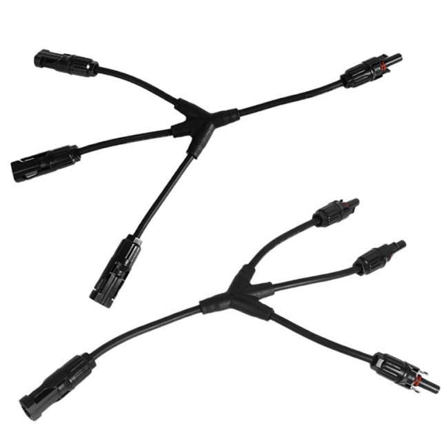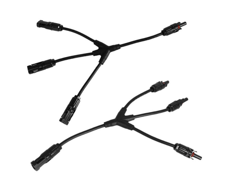MC4 rozbočovací konektor je vyroben z 25 cm dlouhého (celková délka) kabelu o průřezu 4 mm2 (AWG12) a odolného plastu, který zajišťuje pevnost a spolehlivost. Konektory jsou vybaveny pryžovými těsněními s krytím IP65, jsou tedy ideální pro venkovní použití. Určené pro kabeláž solárních aplikací.