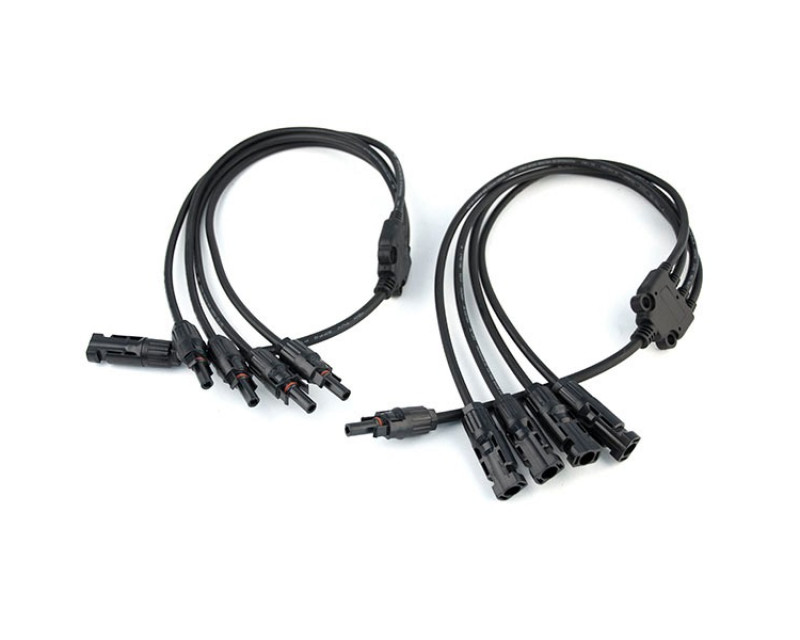MC4 rozbočovací konektor je vyroben z 25 cm dlouhého (celková délka) kabelu o průřezu 4 mm2 (AWG12) a odolného plastu, který zajišťuje pevnost a spolehlivost. Konektory jsou vybaveny pryžovými těsněními s krytím IP65, jsou tedy ideální pro venkovní použití. Určené pro kabeláž solárních aplikací.