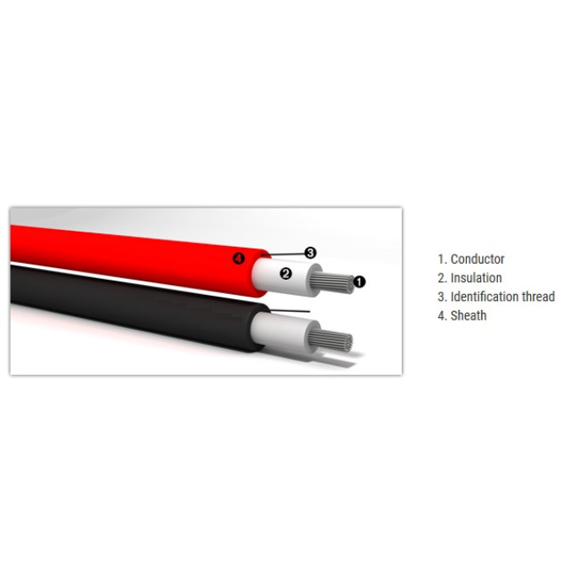 Vysocekvalitní solární kabel určený k profesionálním instalacím ve fotovoltaických zařízeních. Vyroben v EU. TÜV certifikace. Vhodný pro trvalé venkovní i vnitřní použití. Vhodný i do mobilních instalací, do karavanů, obytných aut nebo pro přenosné solární panely. Dále možné fixovat pomocí kabelových svorek.