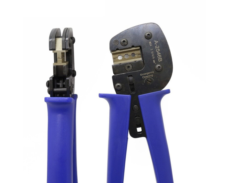 Krimpovací klešte lisovací A-2546B pro solární konektory MC4 - 4, 6, 10 mm2. Vysoce přesný ráčnový mechanismus s velkým tlakem na krimpovací čelisti s minimem ruční síly.