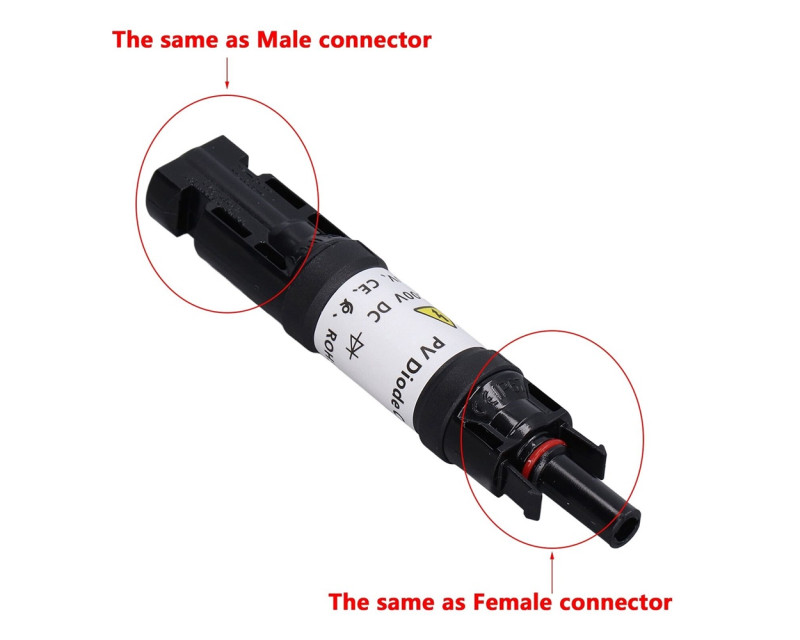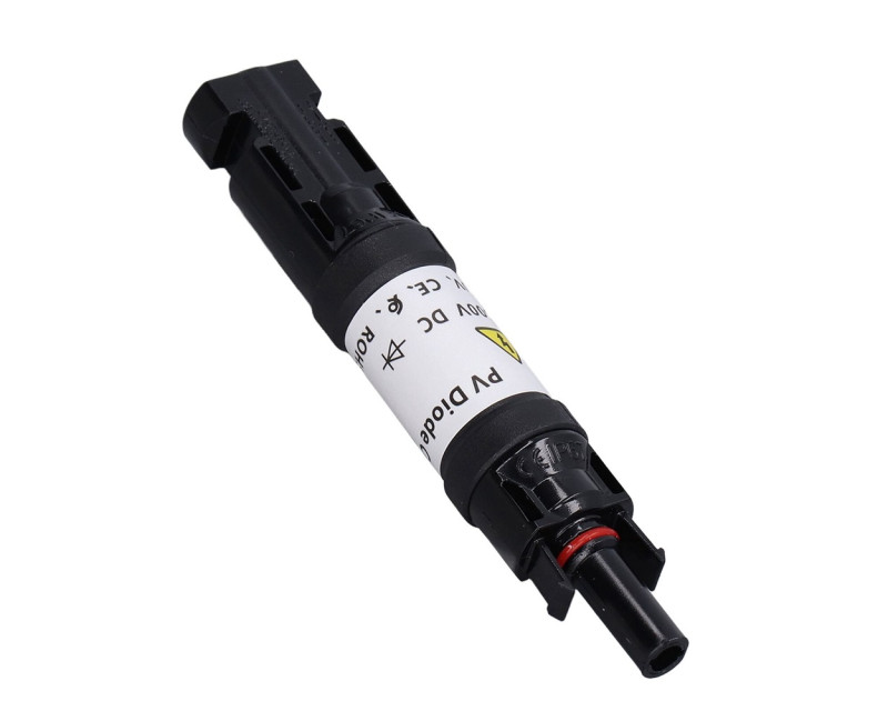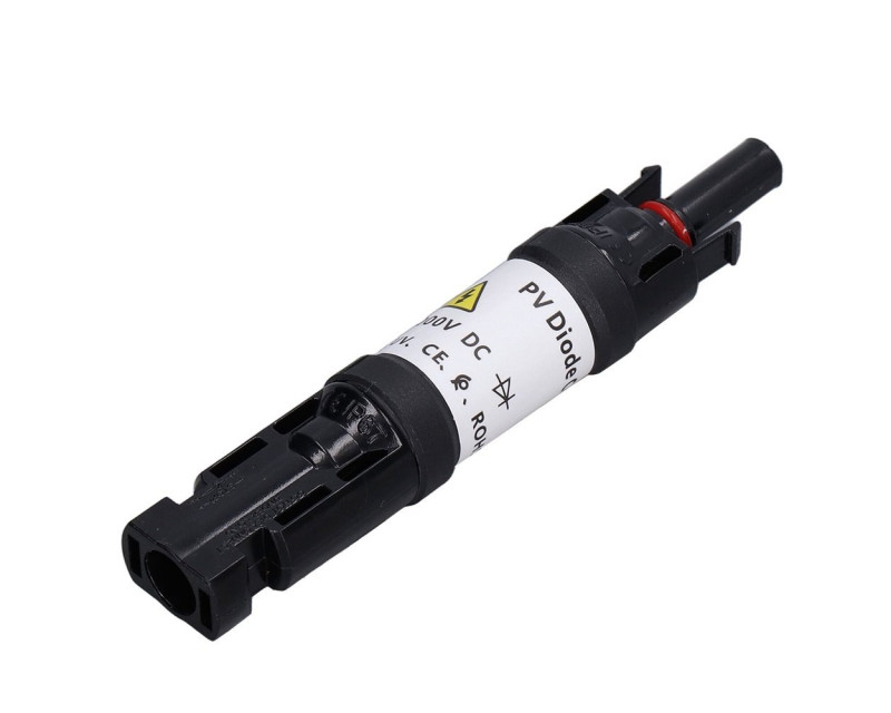 Průchozí dioda na solárních konektorech pro ochranu proti zastínění panelu v paralelním zapojení. Chrání fotovoltaické systémy před poklesem výkonu. Má MC-4 konektory samec a samice pro snadné připojení a odpojení solárních kabelů.