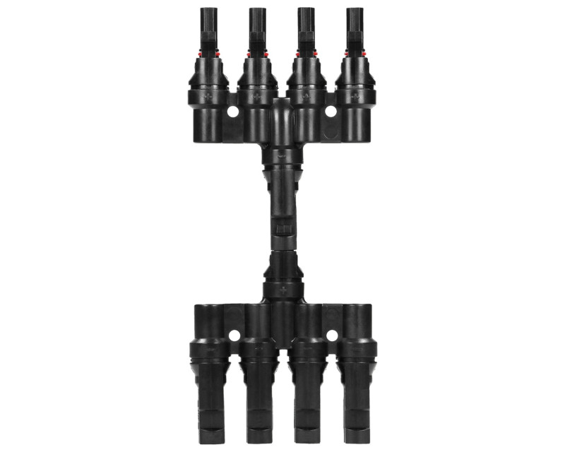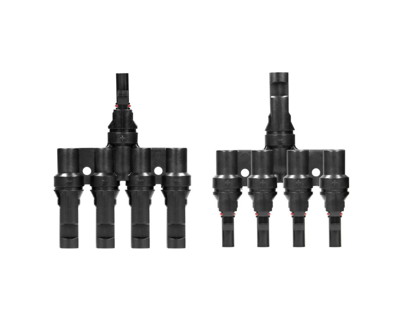 Rozbočovací konektor je vyroben z vysoce pevnostního plastu a je opatřen gumovými těsnícími vložkami. Používá se k paralelnímu propojení 4 solárních panelů.