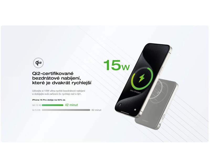 Magnetická powerbanka EcoFlow RAPID přináší do segmentu běžně používaných zařízení opravdu špičkové technologie. Mobil kompatibilní se standardem Qi2 může nabíjet i bezdrátově, ostatní přístroje pomocí zabudovaného USB-C kabelu. Nacvaknutím powerbanky RAPID na mobil se z ní a mobilu stane jeden přístroj, takže ani nabíjení telefonu už nemusí nijak omezovat v pohybu. Magnety N52 a protiskluzové prvky ji udrží spolehlivě na svém místě.