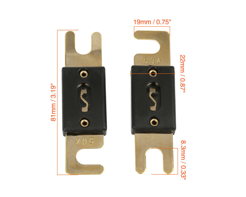 Pojistka plochá pod šroubky 50A. Použití například pro automobily, upravené vozy, čluny, audio a video systémy, solární a elektrické systémy a další