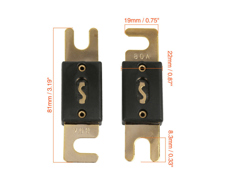 Pojistka plochá pod šroubky 80A. Použití například pro automobily, upravené vozy, čluny, audio a video systémy, solární a elektrické systémy a další