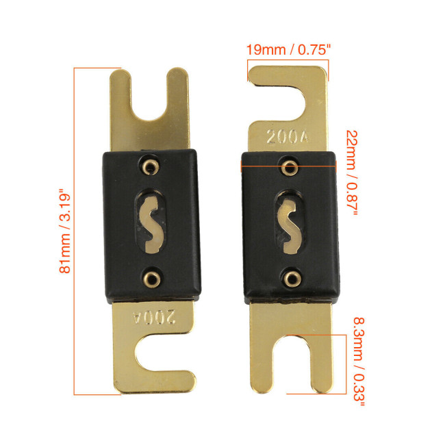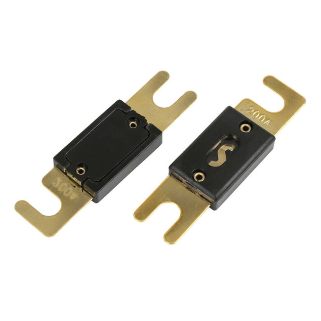 Pojistka plochá pod šroubky 200A. Použití například pro automobily, upravené vozy, čluny, audio a video systémy, solární a elektrické systémy a další