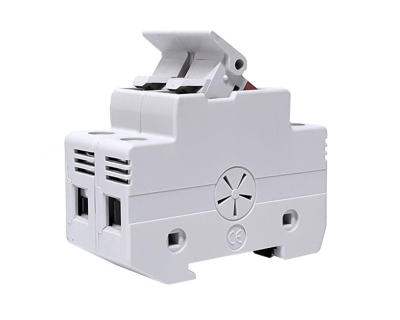 Pojistkový odpojovač slouží jako ochrana fotovoltaických stringů před zkratem. Je určený pro válcové pojistkové vložky velikosti 10 x 38 mm (nejsou součástí odpojovače). Optický LED indikátor stavu pojistky na čelní straně signalizuje selhání pojistky.