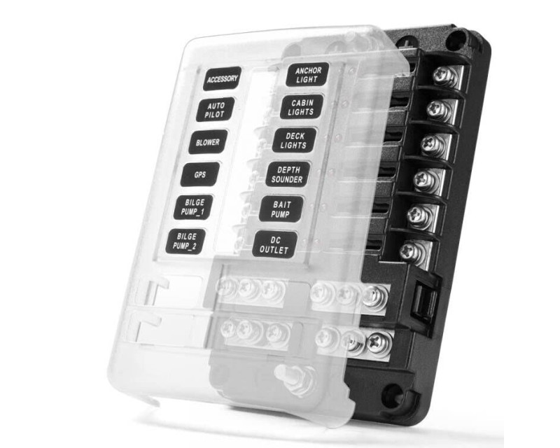 Tato nožová pojistková skříň s uložením až 12 standardních nožových pojistek do max. 30 A na okruh je ideální pro automobilové, námořní, venkovní a domácí aplikace.