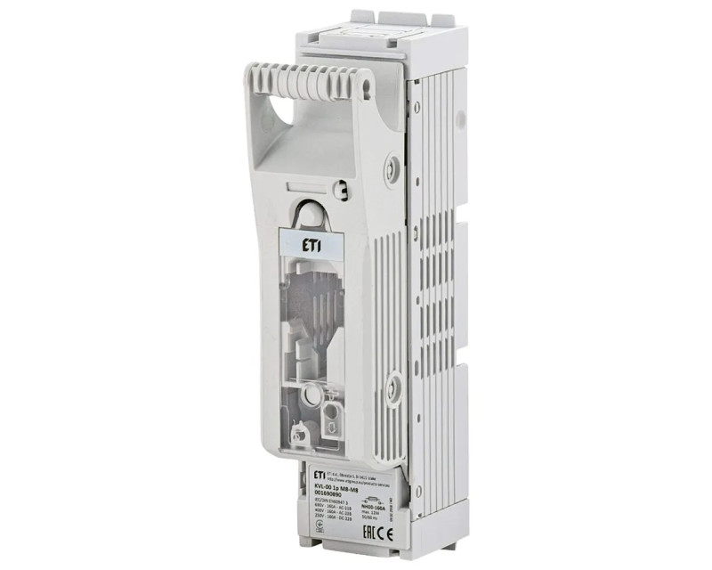 Řadový odpínač KVL-00 M8-M8 1-pólový, In = 160A, Un = 690V DC / 440V DC, pro pojistky NH00, montáž na panel.