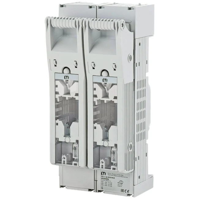 Řadový odpínač KVL-1 M10-M10 2-pólový, In = 250A, Un = 690V DC / 440V DC, pro pojistky NH1, montáž na panel.