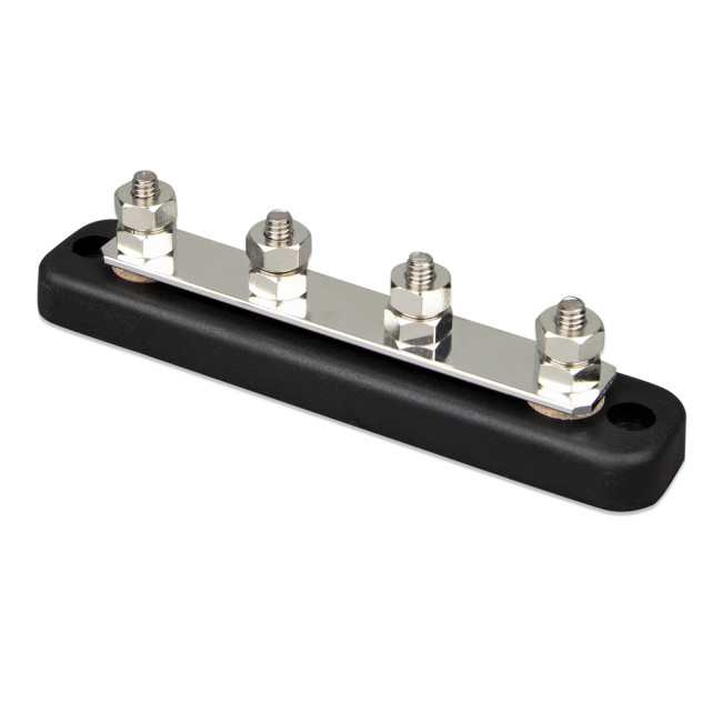 DC Přípojnice se používají pro distribuci vysokého DC proudu a současně take slouží jako připojení pro baterie a/nebo DC zařízení. Nabízíme přípojnice s různým jmenovitým proudem a různým počtem připojovacích svorek. Každá přípojnice je vybavena odnímatelným ochranným krytem.