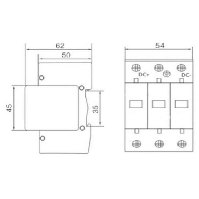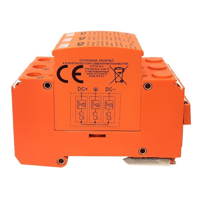 Technicky vyspělá přepěťová ochrana nejvyšší kvality určená pro ochranu fotovoltaických zařízení fungující jako ochrana přepětí třídy B a C. Vybavený vizuálním indikátorem provozu (zelená - ochrana, červená - bez ochrany). Nová verze DC varistorového svodiče třídy T1T2 s napětím Ucpv zvýšeným na 1200V.
