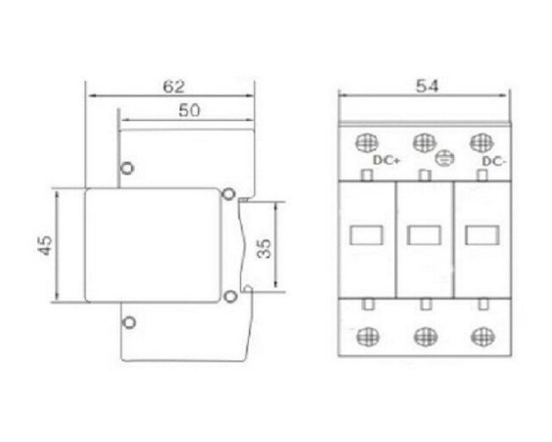 Chránič je široký pouze 18 mm/1 pól a celková šířka 3 pólů je pouze 54 mm.