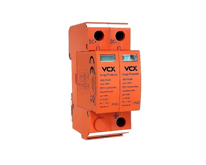 VCX-T2-DC (PV385) 1000V třída T2 - chránič, který je vyroben s použitím vysoce kvalitního varistoru (MOV) s vysokým průtokem. Použití jediného varistoru proto splňuje normy, které jiní výrobci musí splnit použitím více varistorů.