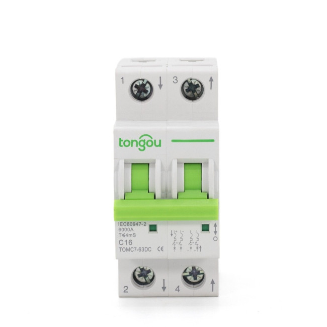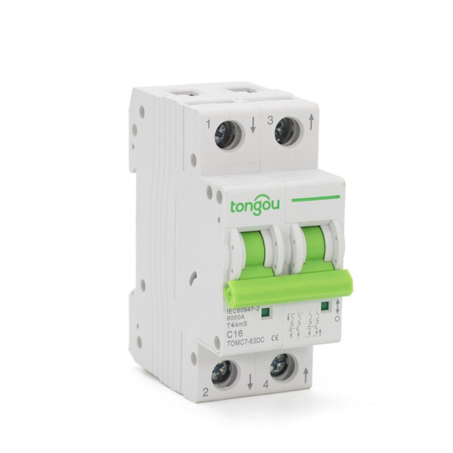 Jistič DC 10A/C 2P Tongou TOMC7-63 na DIN lištu