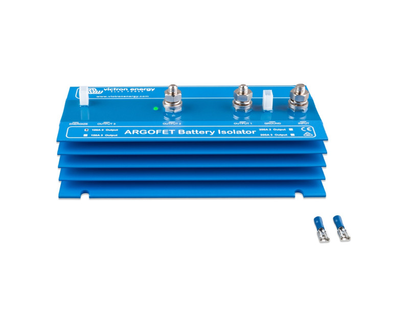 Oddělovače akumulátorů Argo FET 100-2 umožňují současné nabíjení dvou akumulátorů z jednoho alternátoru nebo z jednoho výstupu nabíječky akumulátorů bez toho, aniž by byly akumulátory vzájemně spojené.