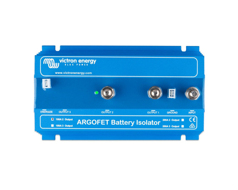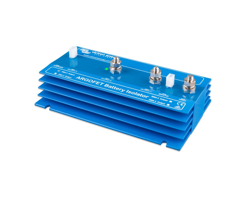 Oddělovač akumulátorů Argo FET 100-2 umožňuje současné nabíjení dvou akumulátorů z jednoho zdroje při maximálním nabíjecím proudu až 100 A. Pro systémy 12/24V.