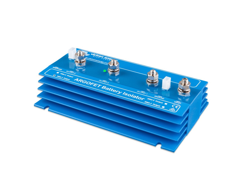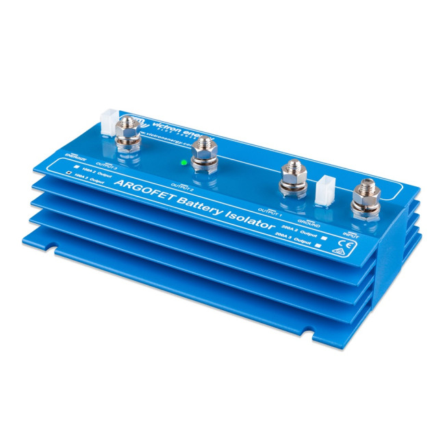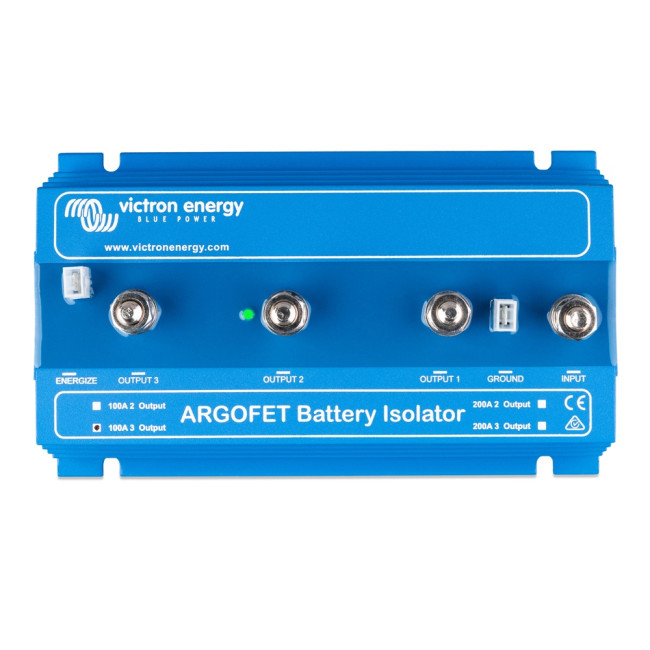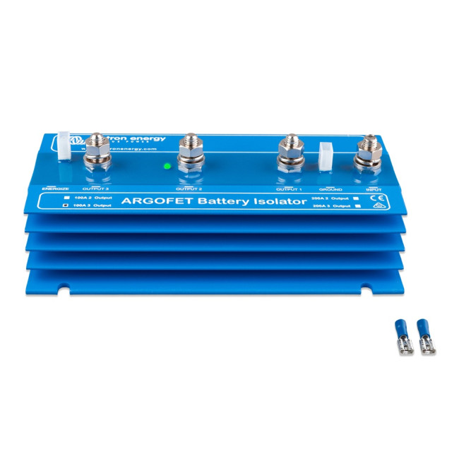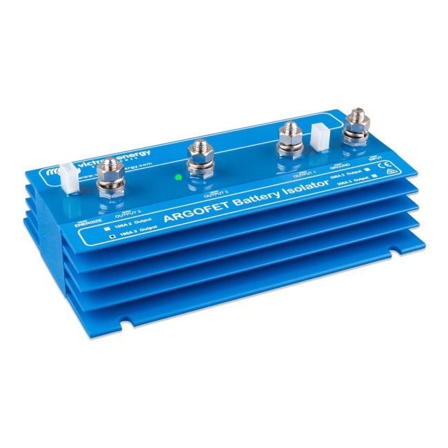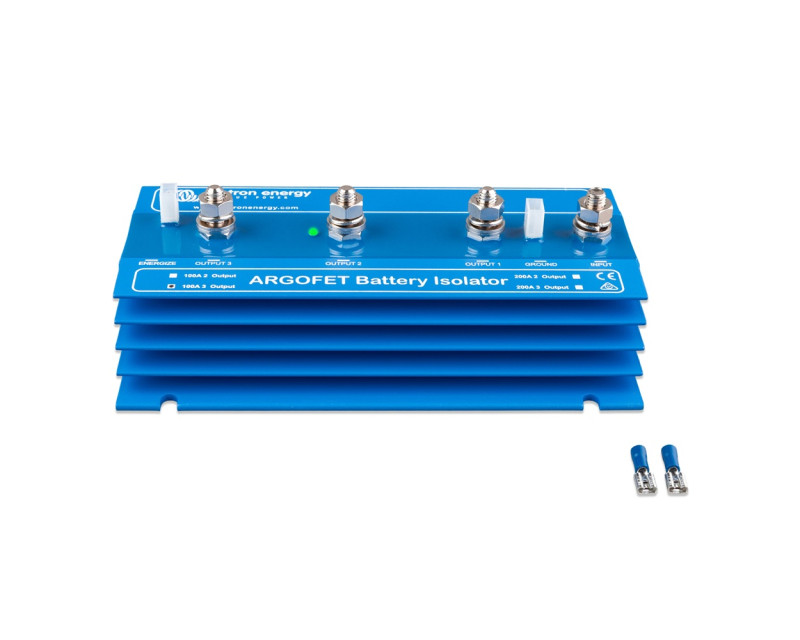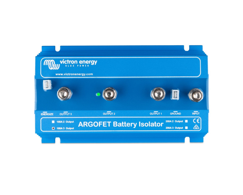 Oddělovače akumulátorů Argo FET 100-3 umožňuje současné nabíjení tří akumulátorů z jednoho alternátoru nebo z jednoho výstupu nabíječky akumulátorů bez toho, aniž by byly akumulátory vzájemně spojené.