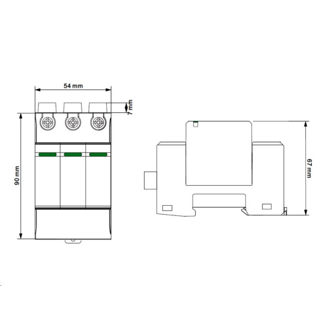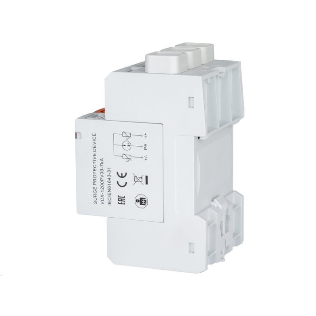 Přepěťová ochrana VCX PV30 1200V je kompatibilní s vodiči do 35 mm², má kompaktní třímodulové provedení a je připravena na montáž do běžných rozvaděčů. Díky IP20 krytí je ideální pro vnitřní použití, zejména ve strojovnách, technických místnostech nebo rozvodnách FV systémů.