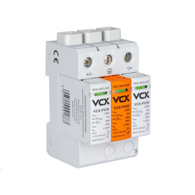 Přepěťová ochrana VCX PV30 DC třída T1+T2 (B+C) 3P 1200V 7kA - profesionální ochrana pro vaše fotovoltaické systémy