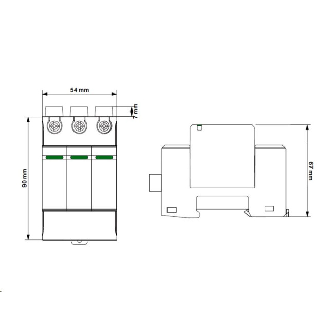 Tato přepěťová ochrana je určena pro přímé použití v DC částech fotovoltaických elektráren do maximálního napětí 1200 V DC. Hodí se jak pro malé domácí systémy, tak i pro větší střešní instalace. Díky kompaktním rozměrům (3P) a možnosti připojení vodičů až do 35 mm2 je montáž snadná a flexibilní. Stupeň krytí IP20 zajišťuje dostatečnou ochranu pro montáž do rozvaděčů.