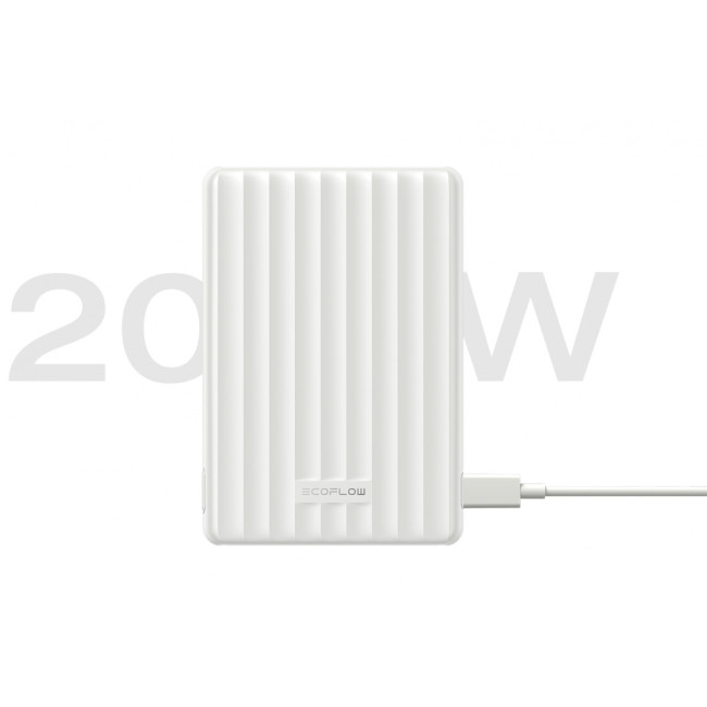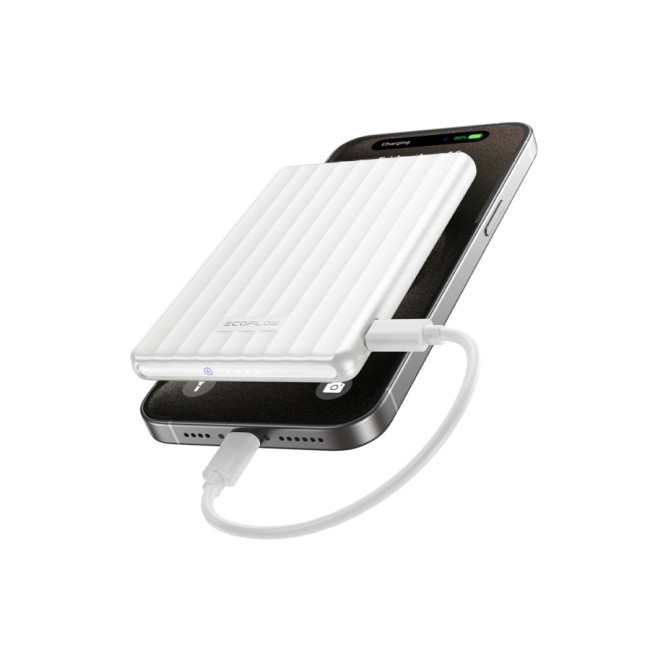 EcoFlow RAPID Mag Power Bank s kapacitou 5 000 mAh. Má ultra tenkou 9,4 mm konstrukci a nízkou hmotnost 123 g. Nabízí stabilní a spolehlivé 7,5W bezdrátové nabíjení a 20W nabíjení prostřednictvím USB-C portu. Technologie X-Cooling udržuje teplotu připojeného telefonu pod 38 °C a tím prodlužuje životnost baterie. Powerbanku lze dobít z 0 % na 70 % již za přibližně 33 minut a díky patentované technologii X-Stream.