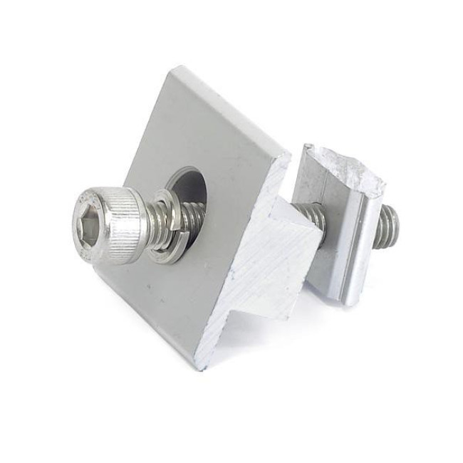 Středový držák je určen pro snadné uchycení solárních panelů z obou stran na hliníkovou lištu řady H a SC. Použijte vždy 2 držáky na každé straně panelu. Pokud máte instalováno více panelů, použijte tento středový držák, který se umísťuje mezi panely. Upevňuje se pomocí imbusového klíče M8.