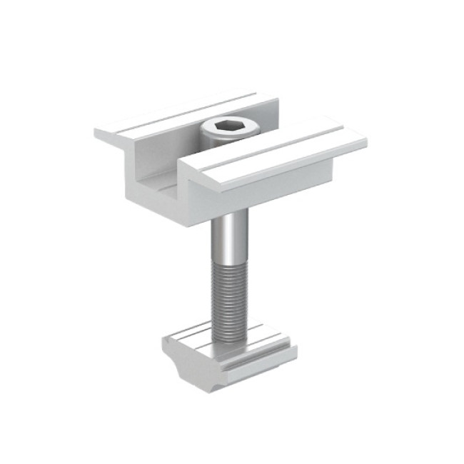 Středový držák se zapuštěným šroubemje určen pro snadné uchycení solárních panelů z obou stran na hliníkovou lištu řady H a SC. Použijte vždy 2 držáky na každé straně panelu. Pokud máte instalováno více panelů, použijte tento středový držák, který se umísťuje mezi panely. Upevňuje se pomocí imbusového klíče M8.