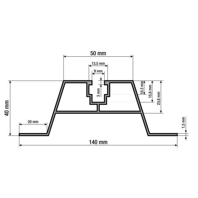 Hliníkový profil pro trapézovou střechu o rozměrech 114 x 40 mm a délce 6 m určený pro montáž fotovoltaických panelů. Panely k profilu přichytíte pomocí středových a koncových úchytů, čtyřhranných matic a imbus šroubů.