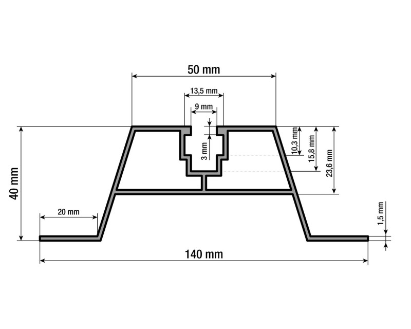 Hliníkový profil pro trapézovou střechu o rozměrech 114 x 40 mm a délce 6 m určený pro montáž fotovoltaických panelů. Panely k profilu přichytíte pomocí středových a koncových úchytů, čtyřhranných matic a imbus šroubů.