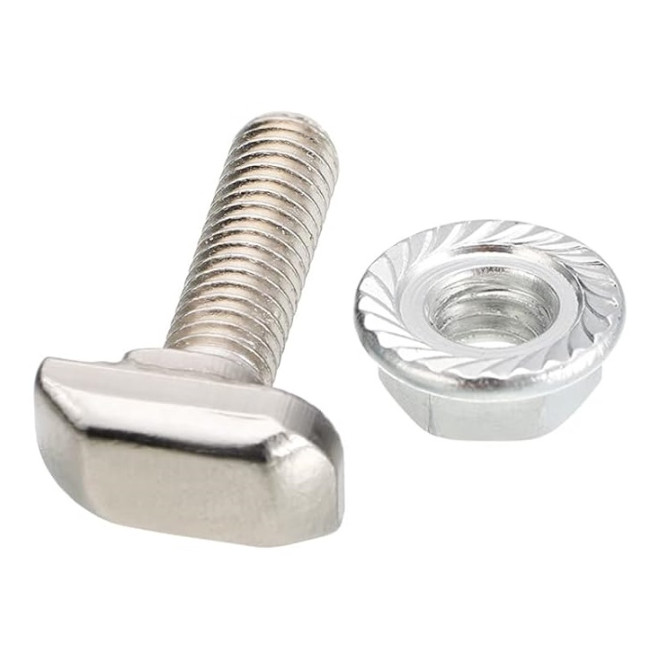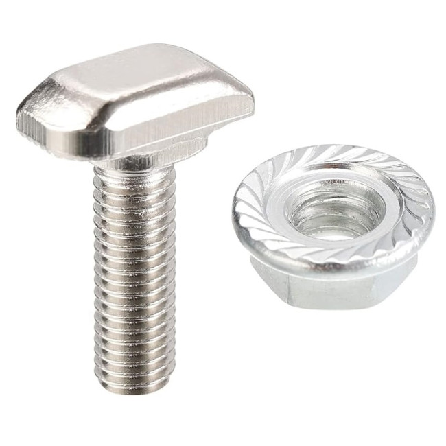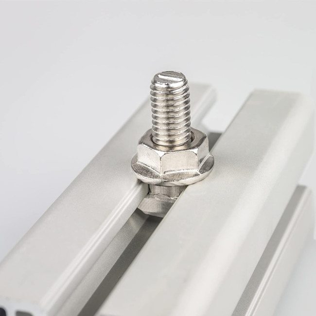 Šroub kladívkový s přírubovou maticí, M8x25, typ 28/15 je určen pro uchycení hliníkových montážních profilů k střešním hákům, držákům a kombivrutům. Šroub se zasouvá do drážky v profilu.