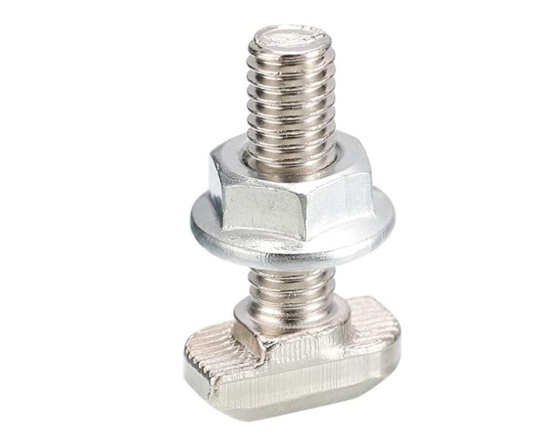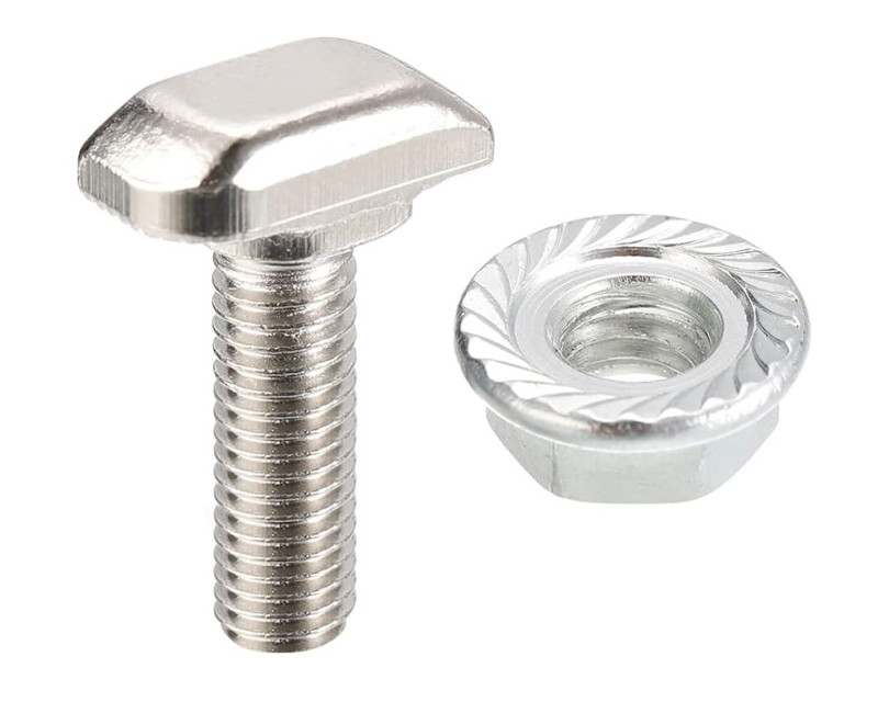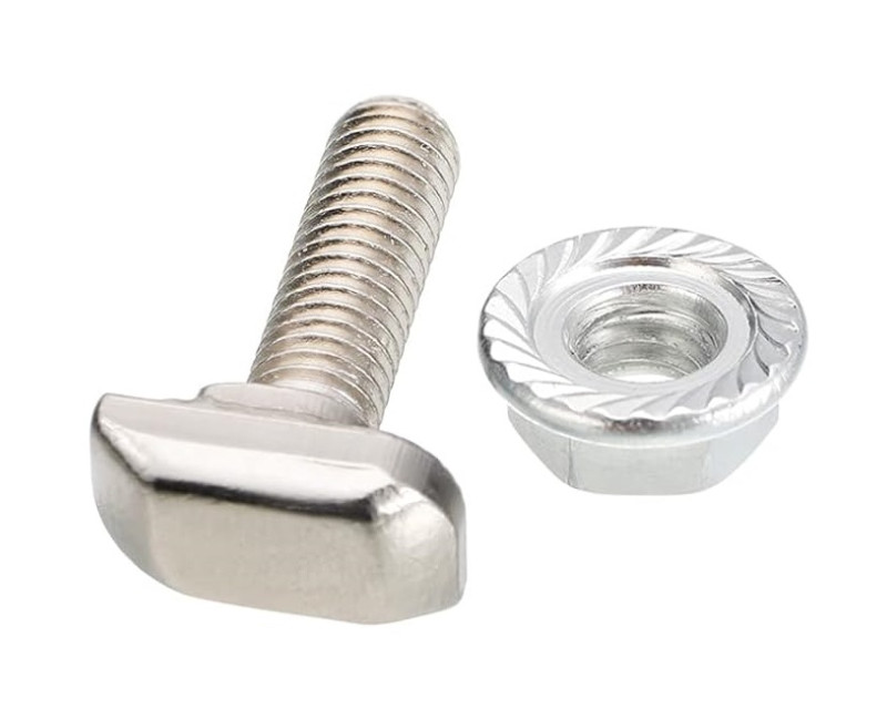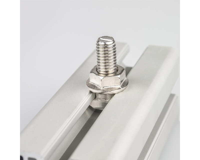 Šroub kladívkový s přírubovou maticí, M8x25, typ 28/15 je určen pro uchycení hliníkových montážních profilů k střešním hákům, držákům a kombivrutům. Šroub se zasouvá do drážky v profilu.