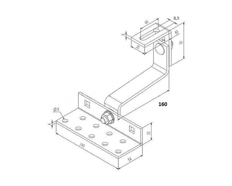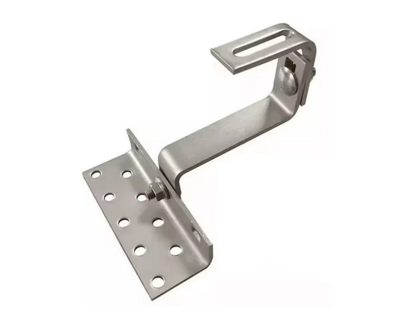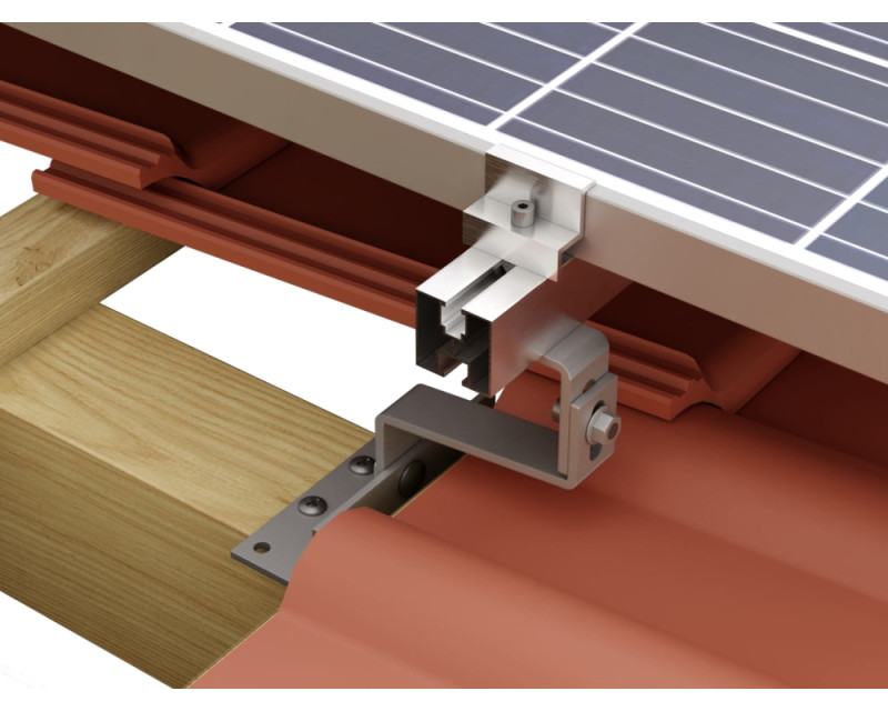 Střešní hák nastavitelný, ocelový pro uchycení solárních panelů. Masivní střešní hák pro lišty odolá těžkému sněhu i větru a slouží pro připevnění solárních panelů na šikmé střechy s taškovou krytinou. Připevňuje se vruty na střešní trámy.