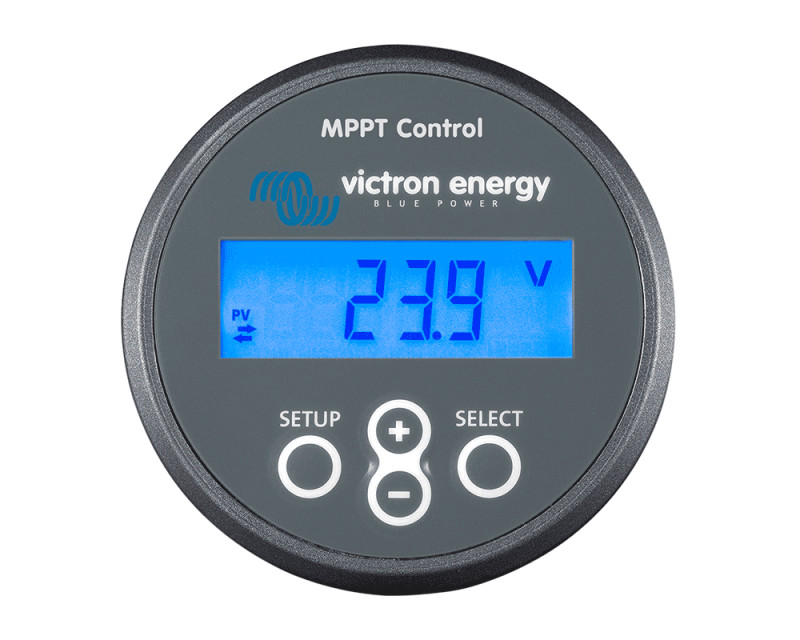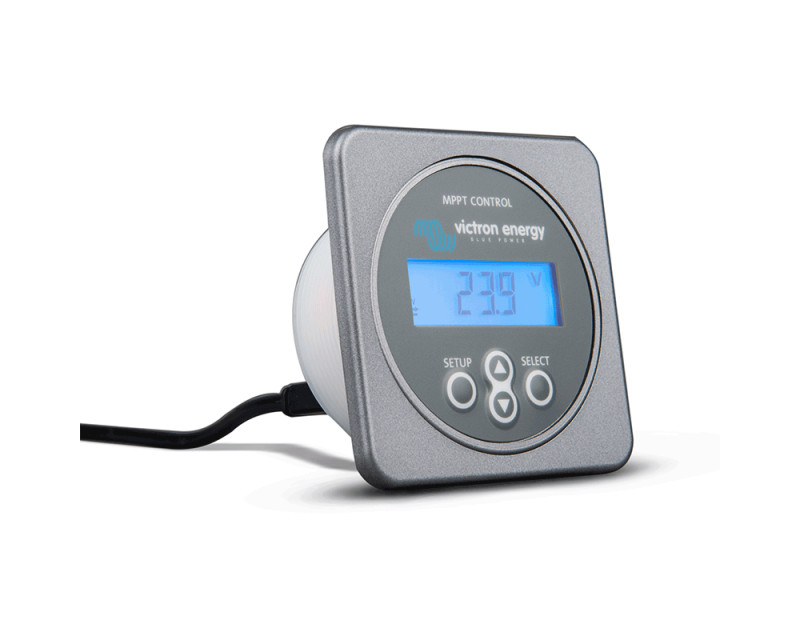 Modře podsvětlený digitální displej k Victron BlueSolar MPPT regulátorům pro sledování aktuálních provozních hodnot, zobrazování historie a nastavování provozních parametrů regulátorů. Je určen pro všechny Victron BlueSolar MPPT regulátory s VE.Direct protokolem se čtyřpinovým portem s výjimkou staršího modelu MPPT 70/15 (již se nevyrábí). Displej není určen pro velké Victron BlueSolar MPPT regulátory 150/70 a 150/85 (jiný komunikační protokol, displej součástí regulátoru).