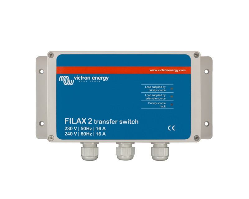 Přepínač Filax byl vyvinut pro přepínání napájení citlivých přístrojů jako např. počítače, průmyslové řídící systémy nebo moderní audiovizuální a zábavná technika z prioritního AC zdroje na druhý alternativní zdroj. Typickým prioritním zdrojem je el. rozvodná síť, generátor nebo jiný zdroj např. místní el. přípojka např. v přístavu nebo v kempu. Typickým alternativním zdrojem je DC-AC střídač (invertor).