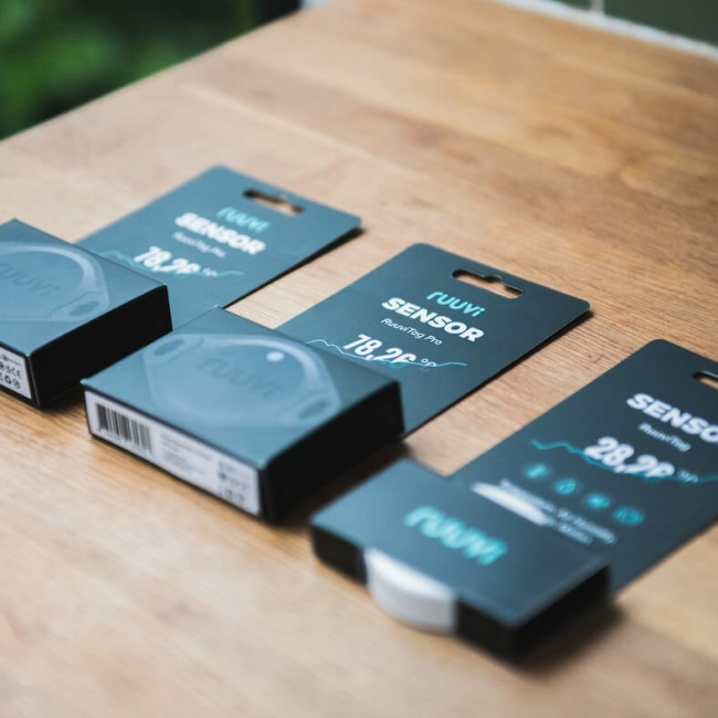 Každý RuuviTag obsahuje senzory pro měření teploty, vlhkosti vzduchu, tlaku vzduchu a senzor pohybu.