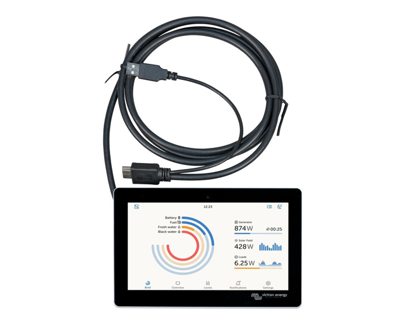 Dotykový displej se zápustnou montáží určený pro Cerbo GX. Poskytuje okamžitý přehled o vašem systému a umožňuje rychle upravit nastavení. Je jednoduše připojený k Cerbo GX pomocí jediného kabelu. Jeho velmi tenký voděodolný design, nastavení nahoře a jeho jednoduchá instalace přinášejí velkou flexibilitu.