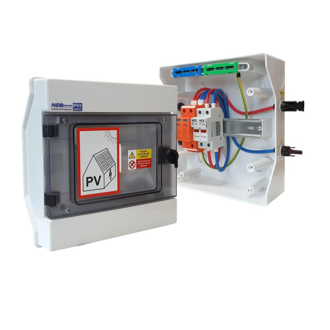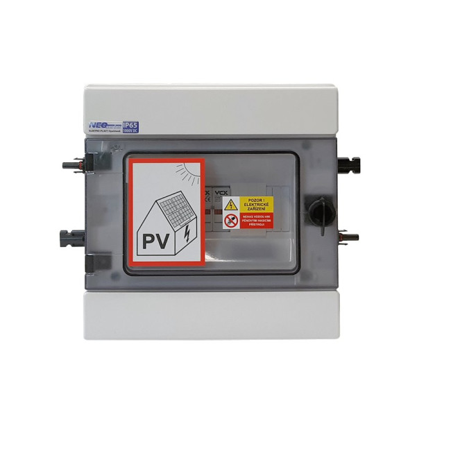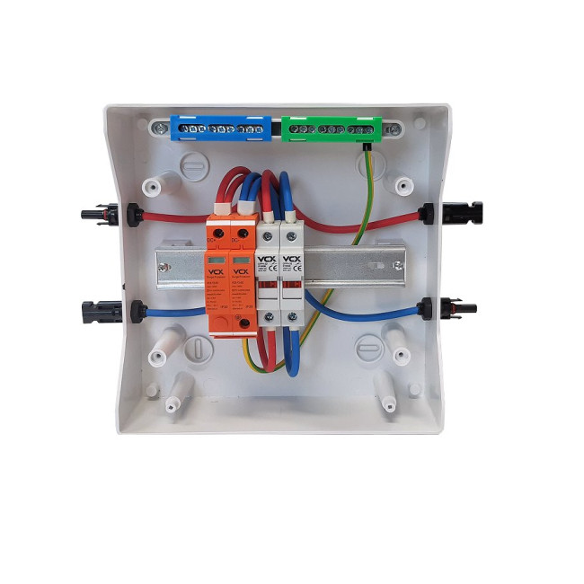Rozváděč je již osazený MC4 panelovými konektory pro vstup z FV panelů (stringu) a výstup pro připojení ke střídači, což Vám značně ulehčí práci při montáži.