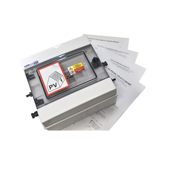 Rozvaděč VCX T2 (C) 1000V pro 1 string IP65 splňuje příslušné normy ČSN.