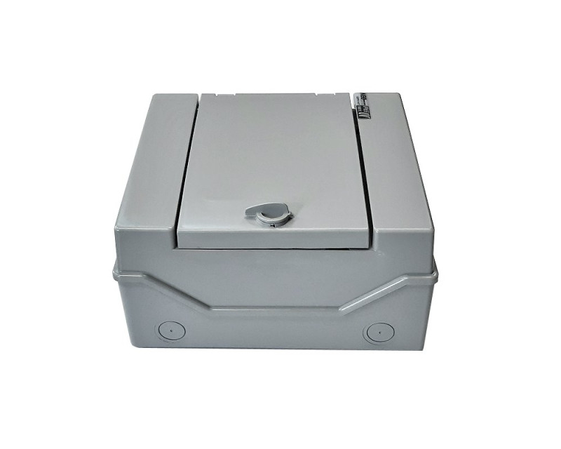 Dveře a kryt jsou vyrobeny z vysoce kvalitního plastu ASA v šedé barvě (RAL 7040).