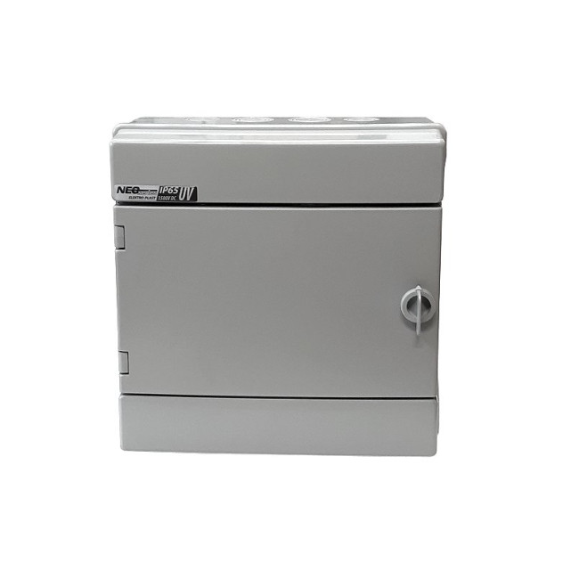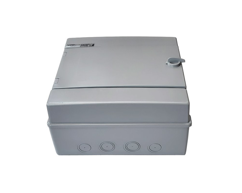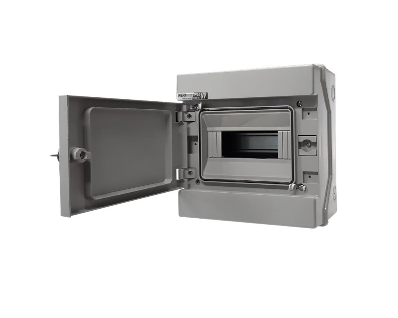 Vysoce kvalitní hermetický rozvaděč z plastu odolného proti UV záření řady RH "NEO" UV pro střídavé napětí (AC) a vyhrazené stejnosměrné (DC) napětí pro fotovoltaiku. Určený pro domácí a průmyslové použití s možností instalace nadproudových jističů a elektrických přístrojů.