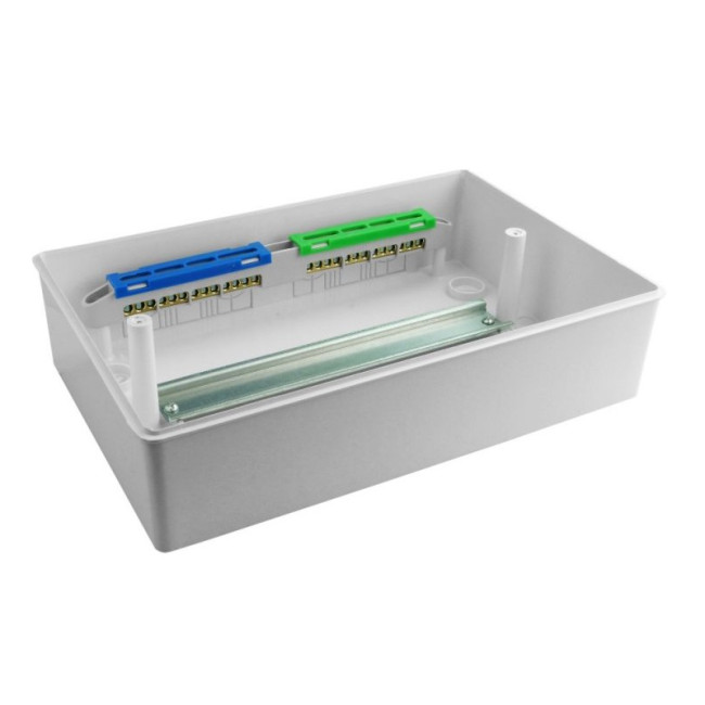 Je vybaven svorkovnicemi N+PE. Jako montážní prvek je v tomto rozváděči použit držák TH 35/7,5 (lišta), který umožňuje montáž miniaturních jističů, proudových chráničů a dalších elektrických zařízení.