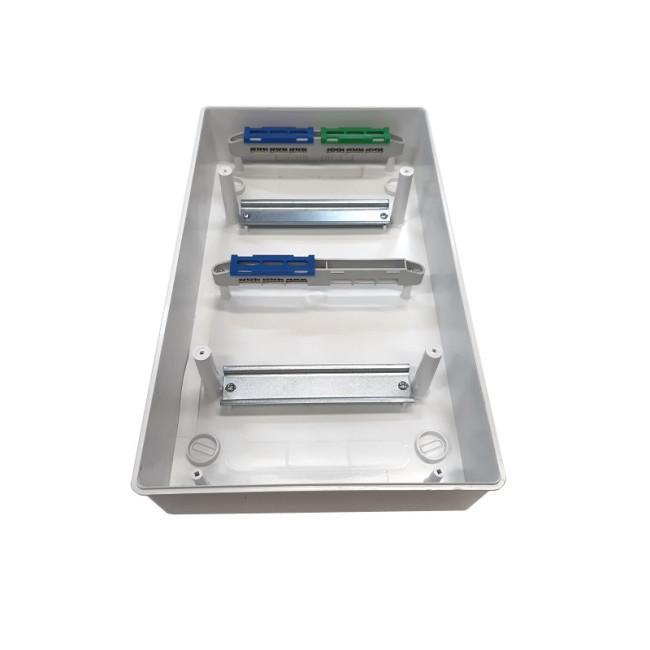 Je vybaven svorkovnicemi N+PE. Jako montážní prvek je v tomto rozváděči použit držák TH 35/7,5 (lišta), který umožňuje montáž miniaturních jističů, proudových chráničů a dalších elektrických zařízení.