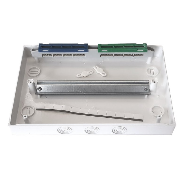 Je vybaven svorkovnicemi N+PE. Jako montážní prvek je v tomto rozváděči použit držák TH 35/7,5 (lišta), který umožňuje montáž miniaturních jističů, proudových chráničů a dalších elektrických zařízení.