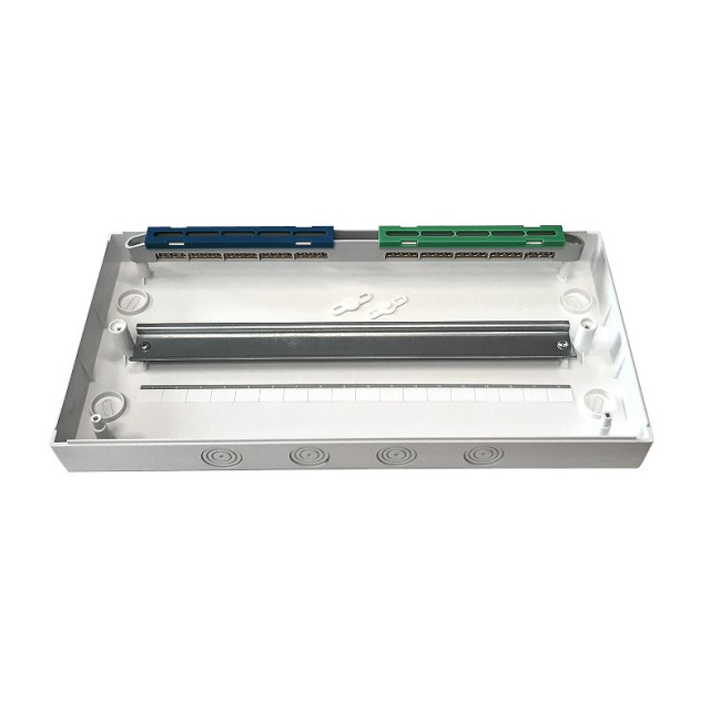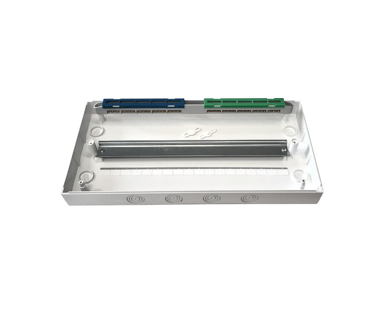 Je vybaven svorkovnicemi N+PE. Jako montážní prvek je v tomto rozváděči použit držák TH 35/7,5 (lišta), který umožňuje montáž miniaturních jističů, proudových chráničů a dalších elektrických zařízení.