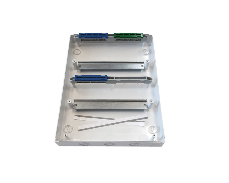 Je vybaven svorkovnicemi N+PE. Jako montážní prvek je v tomto rozváděči použit držák TH 35/7,5 (lišta), který umožňuje montáž miniaturních jističů, proudových chráničů a dalších elektrických zařízení.