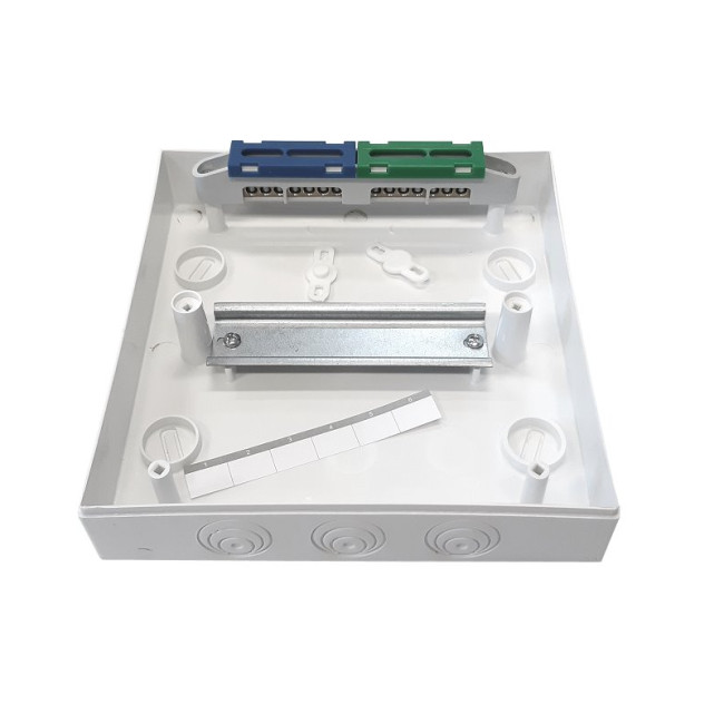Je vybaven svorkovnicemi N+PE. Jako montážní prvek je v tomto rozváděči použit držák TH 35/7,5 (lišta), který umožňuje montáž miniaturních jističů, proudových chráničů a dalších elektrických zařízení.