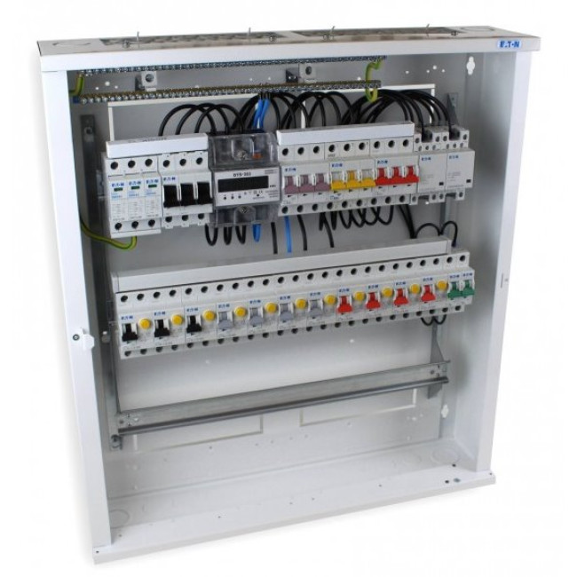 Kvalitní rozvodnice Eaton BF-O-3/72-C se 72 moduly je určena k montáži na stěnu. Tato velkoobsahová rozvodnice s plnými dvířky je celá bílá a vyrobená z oceli. Kvůli nižšímu krytí použijte tuto modulovou rozvodnici pouze do interiéru, kde nemůže přijít do kontaktu s vodou či vlhkostí.