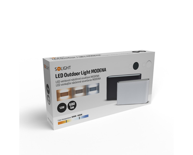 Solight LED venkovní nástěnné osvětlení Modena, 12W, 680lm, 120°, černá