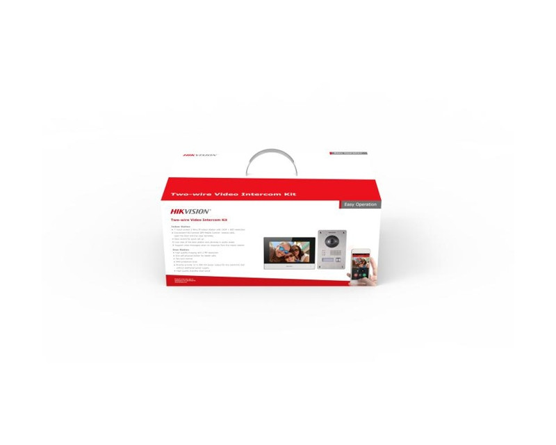 Sety IP videotelefonů HikVision Obsahuje venkovní tablo DS-KV8103Y-IMPE2, povrchovou instalační krabici KAB8103-IMEX, vnitřní video telefon DS-KH6320Y-WTPE2 a napájecí adaptér 24VDC.
